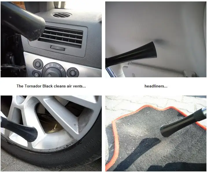 Пістолет для чищення автомобілів Tornador Black випускає тонкий туман розчину, що чистить, який не перенасичує поверхні. Ви побачите, як рідина стає брудною, коли з поверхні відокремлюється бруд. Протріть рушником із мікрофібри. Потім поверніть циферблат, щоб вимкнути воду, і використовуйте стиснене повітря, щоб висушити очищену область. Це так просто.